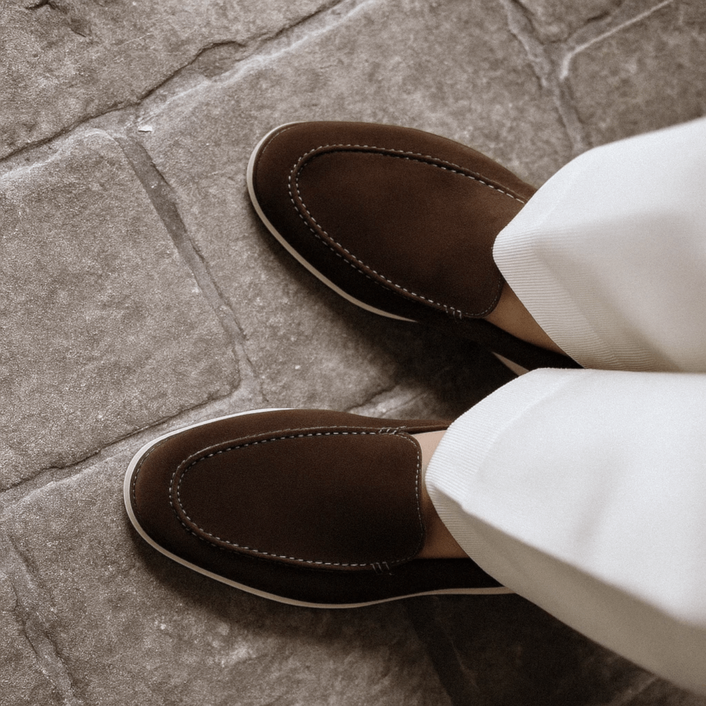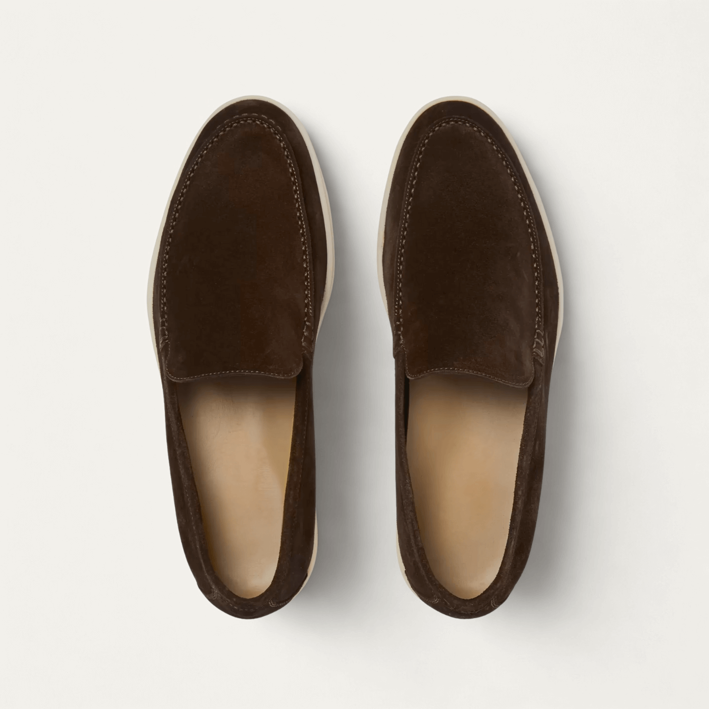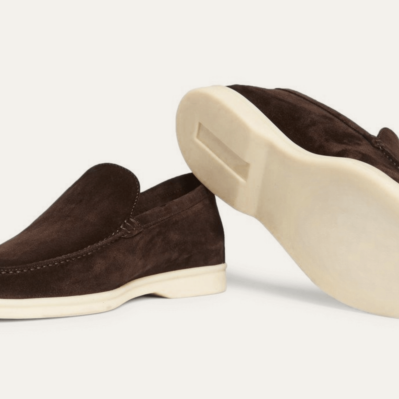Cut from premium suede and left unlined for enhanced softness and breathability, they mold effortlessly to the foot with wear. The lightweight rubber sole ensures all-day comfort, while the hand-stitched apron and side seams reflect a quiet mastery of detail. Designed for warm-weather ease, they transition seamlessly from resort paths to city streets, with or without socks.