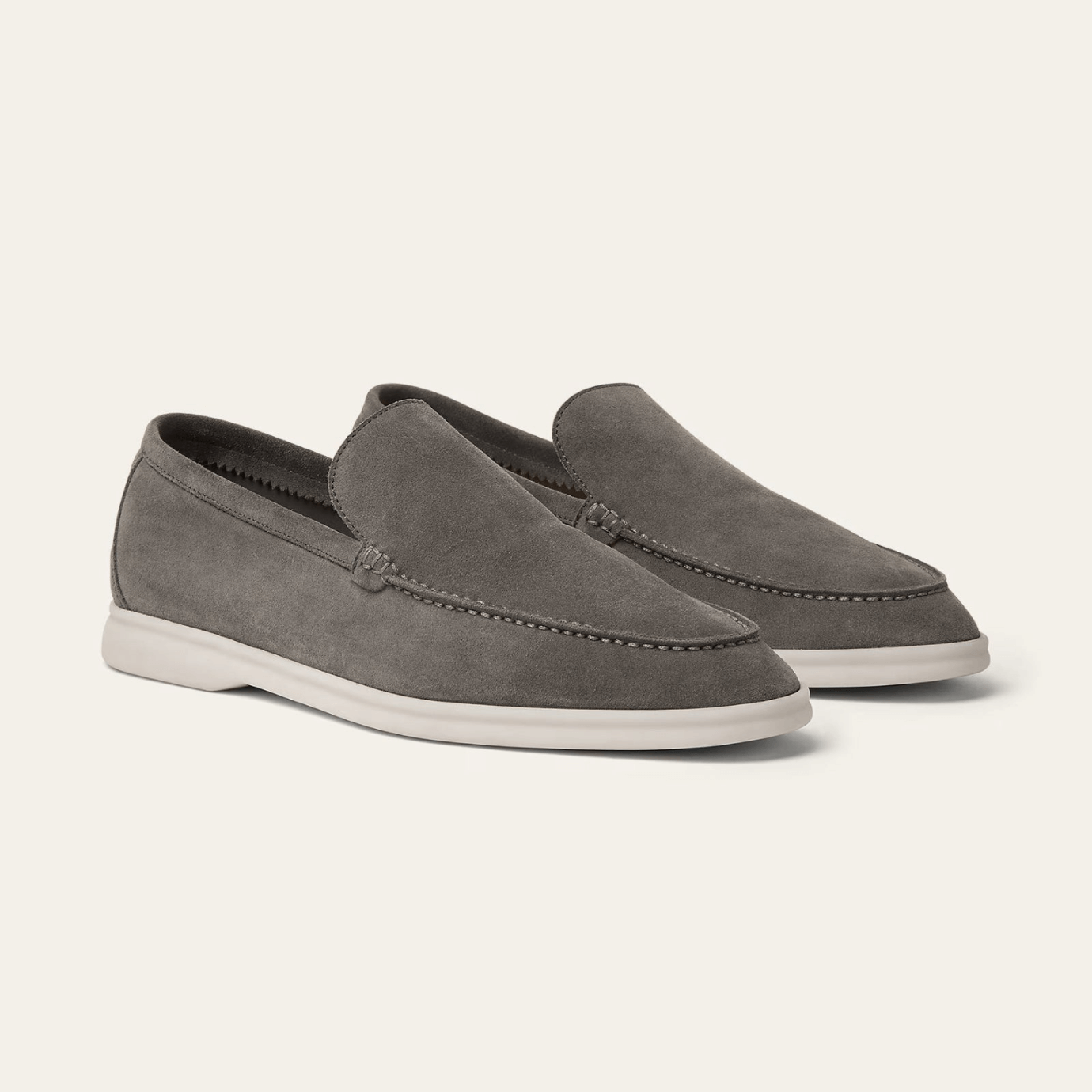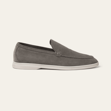Cut from premium suede and left unlined for enhanced softness and breathability, they mold effortlessly to the foot with wear. The lightweight rubber sole ensures all-day comfort, while the hand-stitched apron and side seams reflect a quiet mastery of detail. Designed for warm-weather ease, they transition seamlessly from resort paths to city streets, with or without socks.